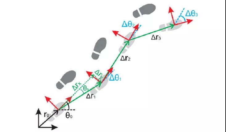从惯性传感器(包含加速度计和陀螺仪)得到每一刻的加速度和角速度,通过时间积分,得到速度和角度,再通过空间累加,就可以推算出实时的位置。