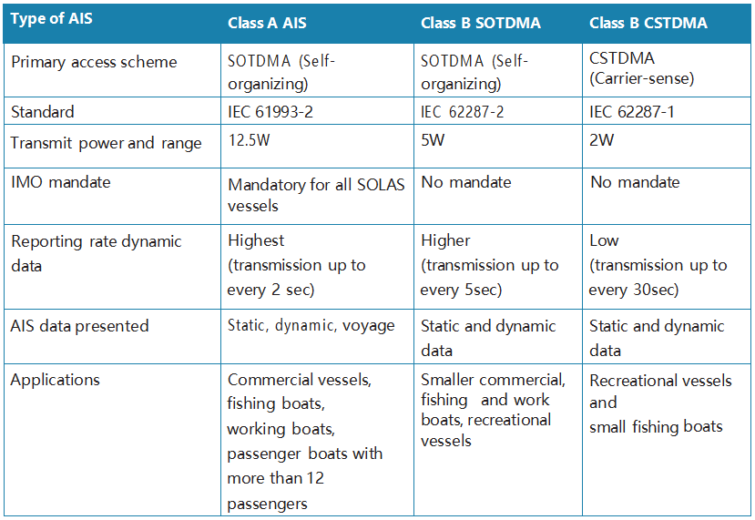 A brief comparison between class A and class B AIS is illustrated in the following table.